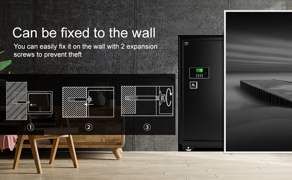 ✅【EXTRA LARGE SECURITY SAFE BOX】:Our extra-large security safe weighs 180 pounds, so it's hard for anyone to steal it. 75mm extra-thick explosion-proof steel door, 6*25mm high-strength solid locking bolts and pry-proof concealed hinges enhance the security of the safe and provide reliable protection for your valuables, plus you can use expansion screws to secure the safe to the wall to further enhance anti-theft.