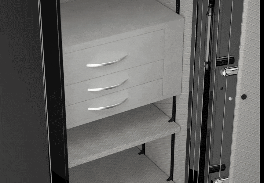 Drawer hidden compartment & False bottom in safe. All the drawer and shelves are removable and adjustable.