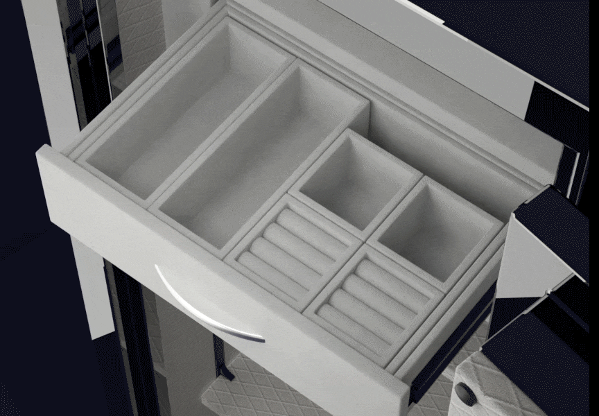 DIY jewelry drawer trays can be freely combined and feature precision glide rails for easy access.