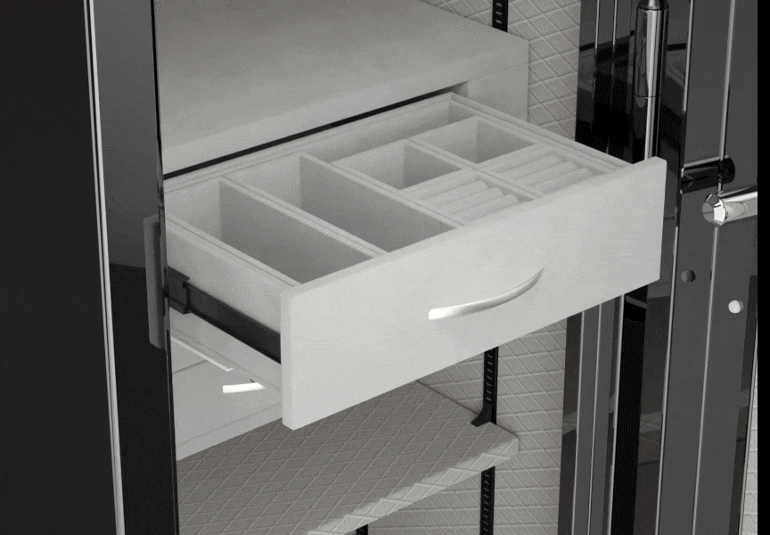 Drawer hidden compartment & False bottom in safe. All the drawer and shelves are removable and adjustable.