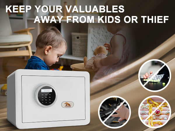 【Safe and Strong】Tigerking small safe is made of thickened solid steel material, equipped with a high security keypad locking system and two sturdy locking rods (0.8 inch diameter) to prevent forcible entry (total net weight 24.2 lbs), extremely durable and sturdy.