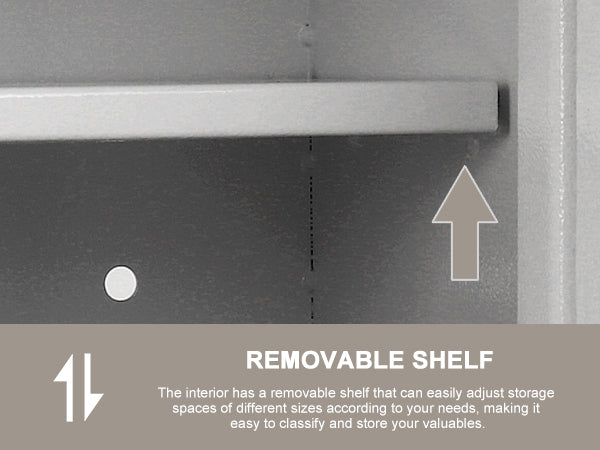 【Internal Structure】This safe box comes with built-in LED lights and removable shelf, make you easily to use it in dark and flexibly store your valuables, including money, pistols, jewelry, documents (A4 size, non-foldable), 13.3-inch laptop and etc. Inside: 13.5"W x 9.5"D x 9.5"H.