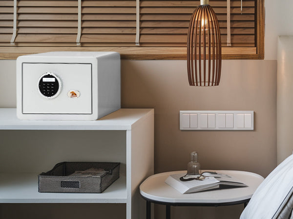 Brand TIGERKING Product Dimensions 9.9"D x 13.8"W x 9.9"H Lock Type Key Color WHITE Capacity 1.2 Cubic Feet Material Alloy Steel Special Feature Durable Mounting Type Wall Mount; Floor Mount Control Type Push Button Control Recommended Uses For Product Home Theme Cabinet safe box Included Components Keys, Bolts Item Weight 24.2 Pounds Style Digital safe Alarm Vibration, Audible Water Resistance Level Not Water Resistant Chamber Depth 10.6 Inches Chamber Height 9.5 Inches Chamber Width 13.5 Inches Manufacturer TIGERKING Part Number E25LK Item Weight 24.2 pounds Item model number E25LK Size 1.0 Cu Ft Pattern LK-WHITE Special Features Durable