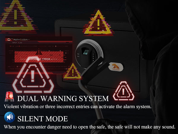 【Dual Alarm Warning System】: Violent vibration or three-incorrect entries can activate the warning beep which adds additional protection to this security safe box; The alarm will last for 60 seconds unless you enter the correct code.