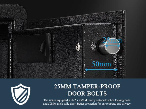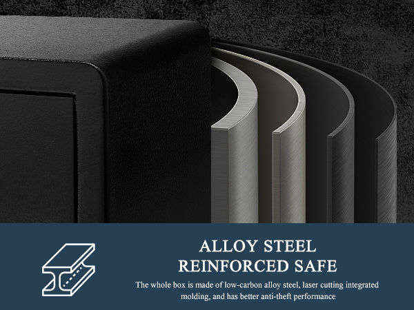 【Durable and Sturdy Safe】: TIGERKING security safe is made of thickened solid steel material has strong reliability and long-lasting strength; In addition to the electronic lock, the security safe features two live-door bolts, pry-resistant steel door, and pry-resistant concealed hinges; Offering reliable protection for your valuables, even while traveling.